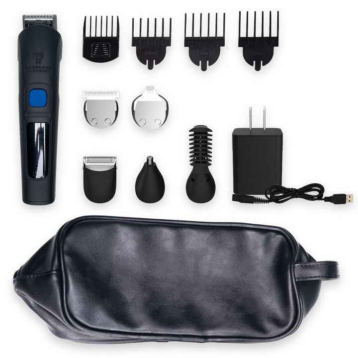 The kit also includes the BODBARBER 11-in-1 Body Groomer, with over 11 attachments to groom your body from head to toe.